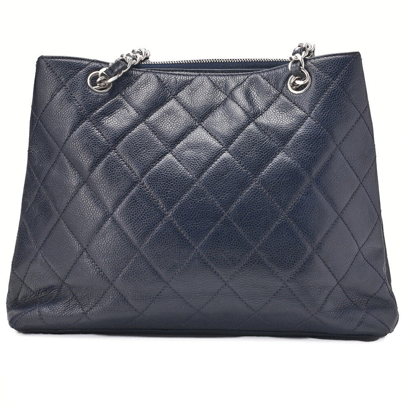 Gebrauchte Big Coco Top Handle 2WAY Chain Schultertasche Lammleder Kaviarhaut Blau Goldfarbene Hardware Gebraucht