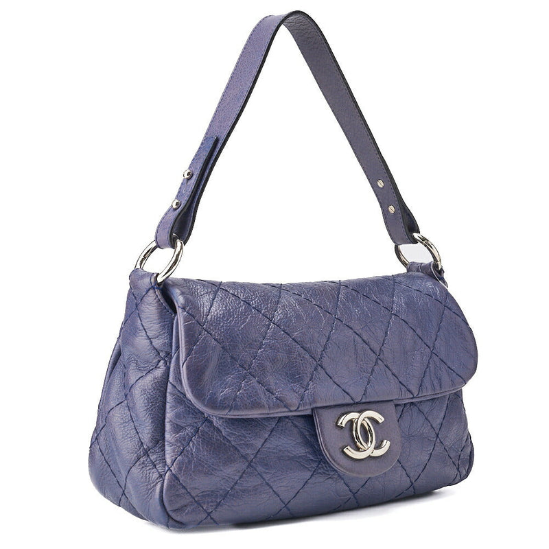 Pre-Owned Schultertasche Matelassé Leder Navy Silberfarbene Hardware Pre-Owned