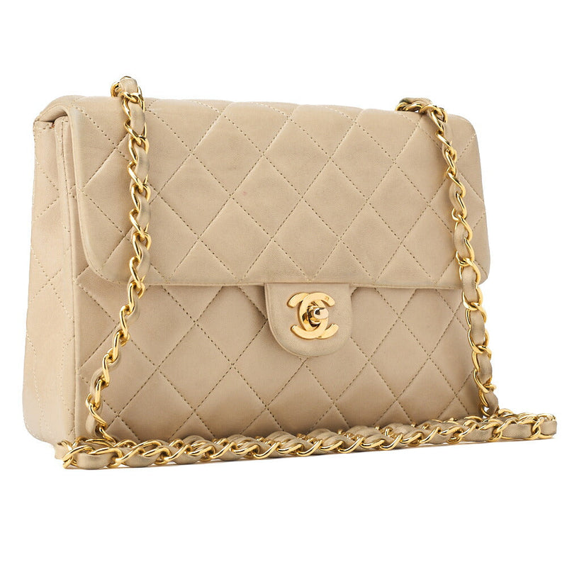 Pre-Owned Schultertasche Matelasse 20 Lammleder Beige Goldfarbene Hardware Pre-Owned