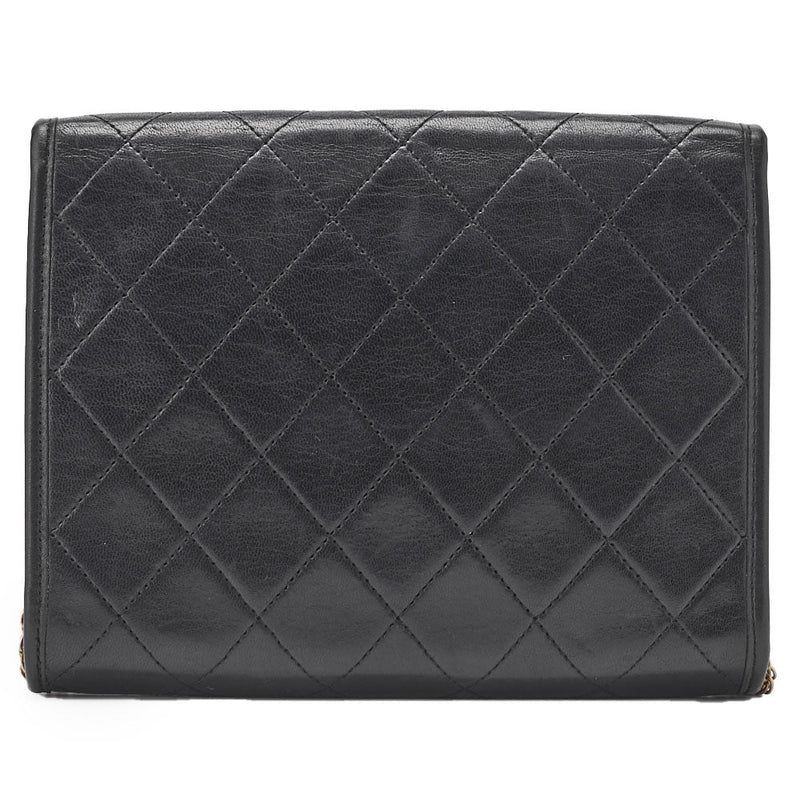 Pre-Owned Schultertasche Matelassé Drehverschluss Doppelklappe Kette Schulter Lammleder Schwarz Goldfarbene Hardware Pre-Owned