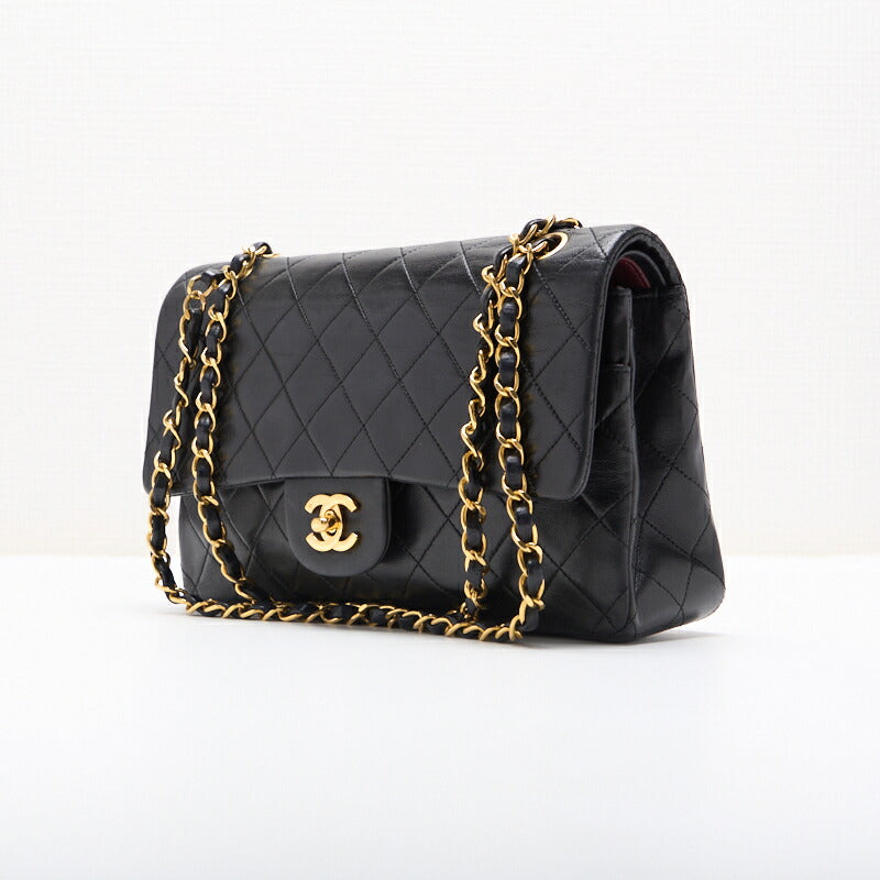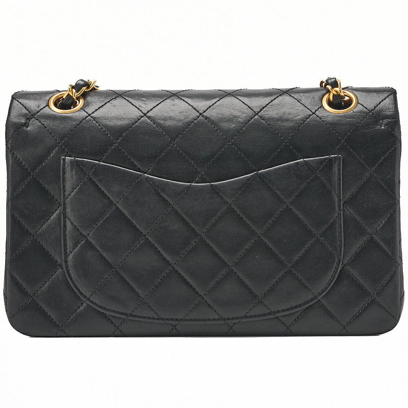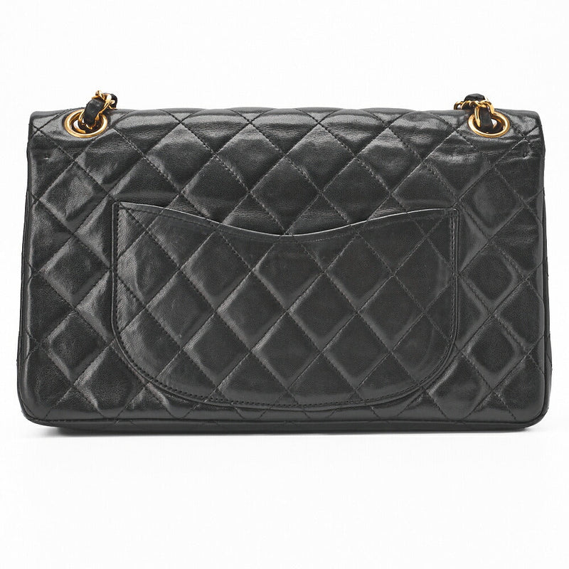 Pre-Owned Schultertasche Matelassé Doppelklappe Lammleder Schwarz Goldfarbene Hardware Pre-Owned