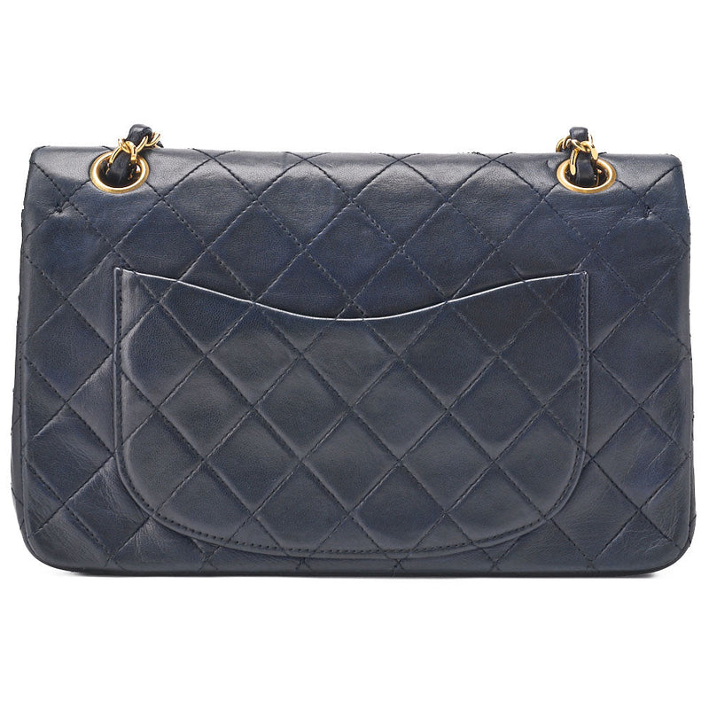 Pre-Owned Schultertasche Matelassé Doppelklappe Lammleder Navy Goldfarbene Hardware Pre-Owned
