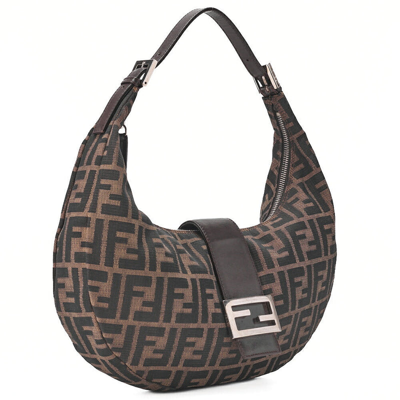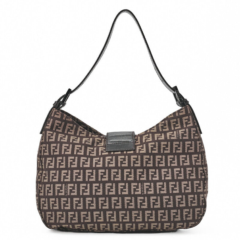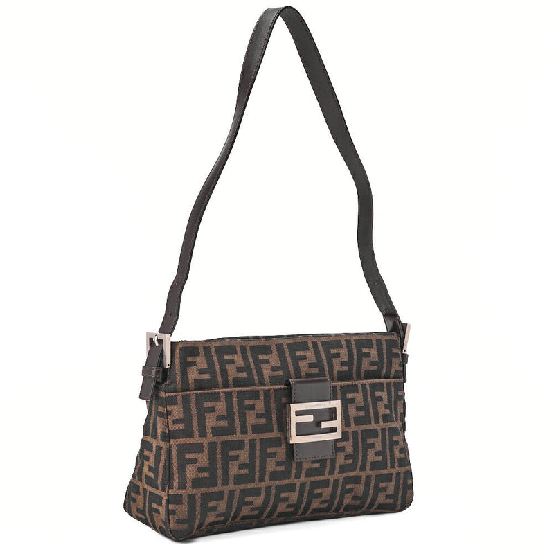 Pre-Owned Umhängetasche Zucca Canvas Leder Braun Silberfarbene Hardware Pre-Owned