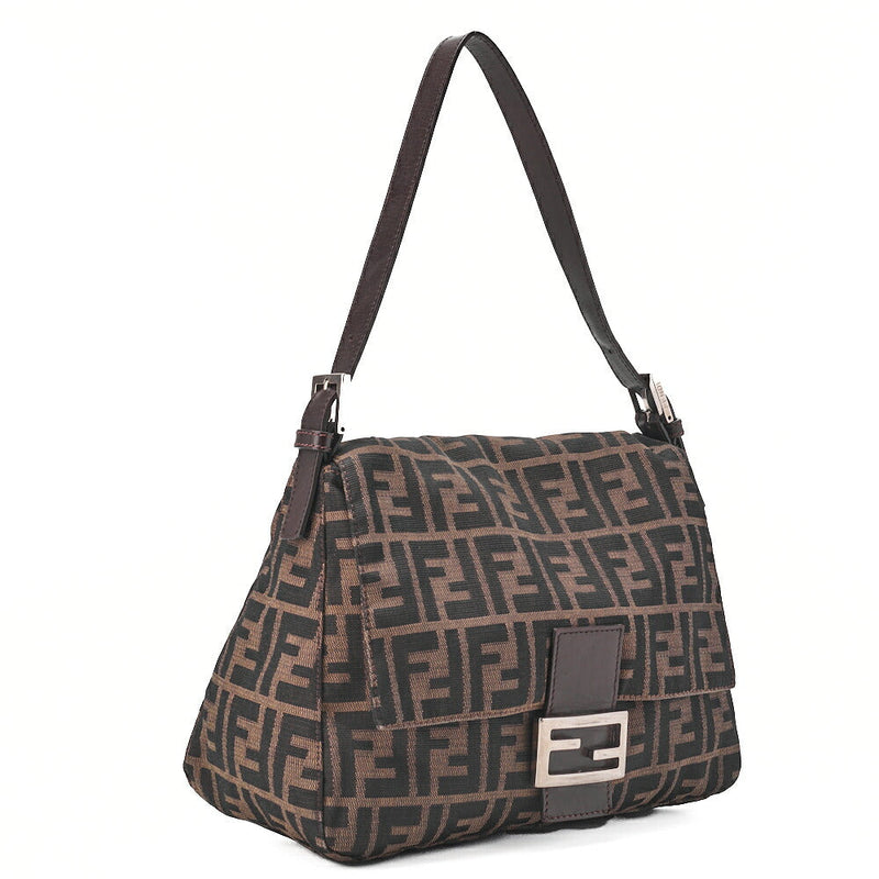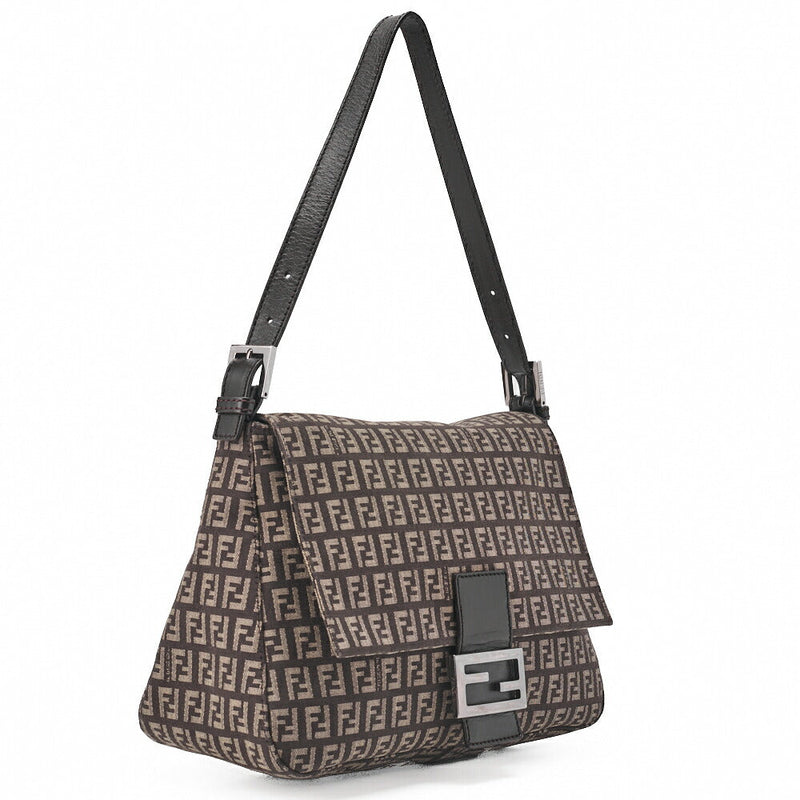 Pre-Owned Umhängetasche Zucca Flap Canvas Leder Braun Silberfarbene Hardware Pre-Owned