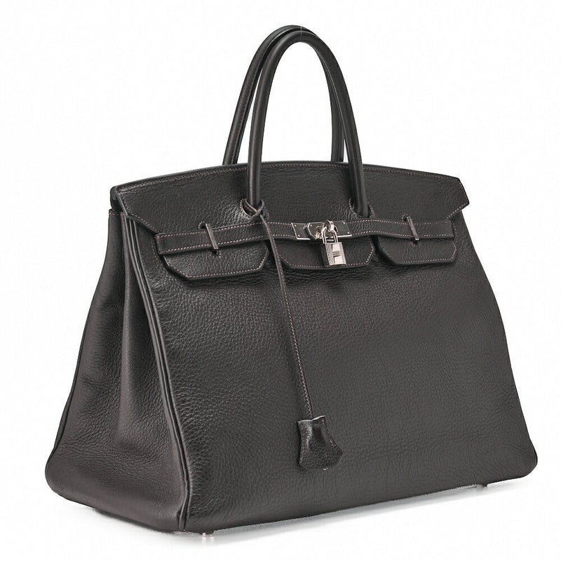 Gebrauchte Birkin 40 Handtasche Tryon Clemence Braun Silberfarbene Hardware Gebraucht