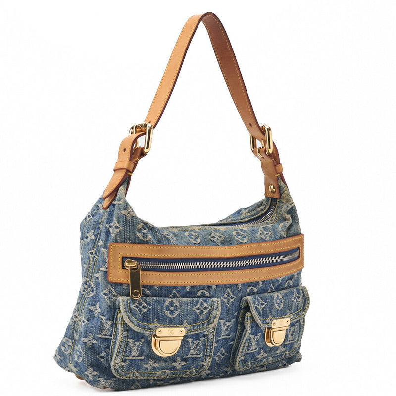 Pre-Owned Vuitton Umhängetasche Monogram Denim Buggy PM Blau Goldfarbene Hardware Pre-Owned