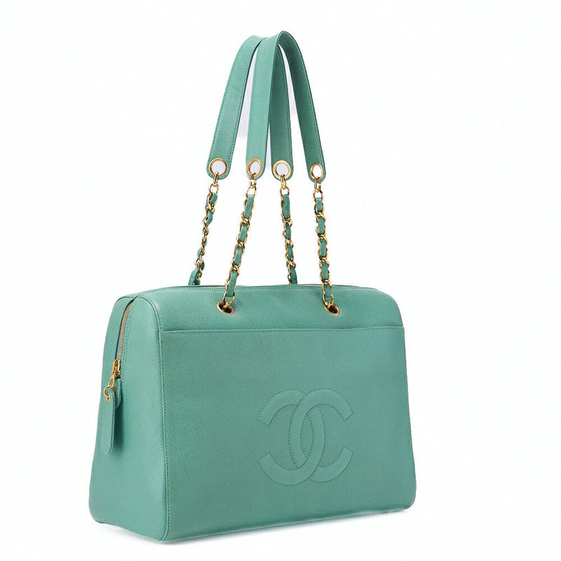 Pre-Owned Shoulder Bag Caviar Skin Black Coco Mark Ball Charm Large Size Gold-Tone Hardware, Pre-Owned