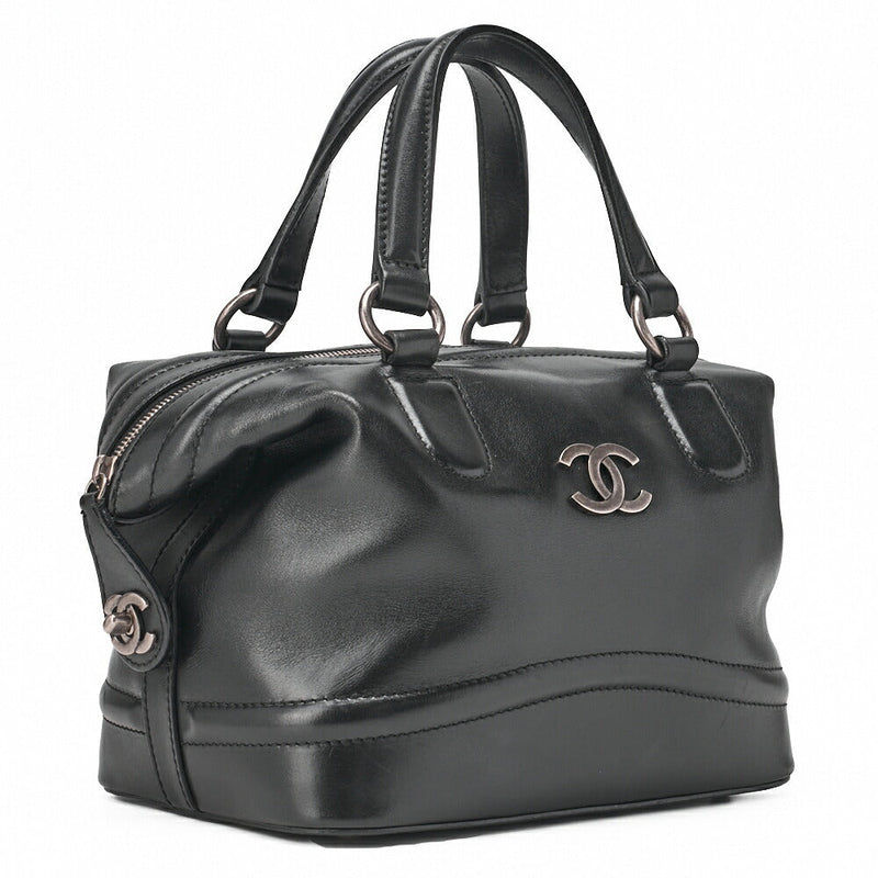 Pre-Owned Handbag Mini Boston Bag Calfskin Matelassé Coco Mark Black Silver-Tone Hardware, Pre-Owned
