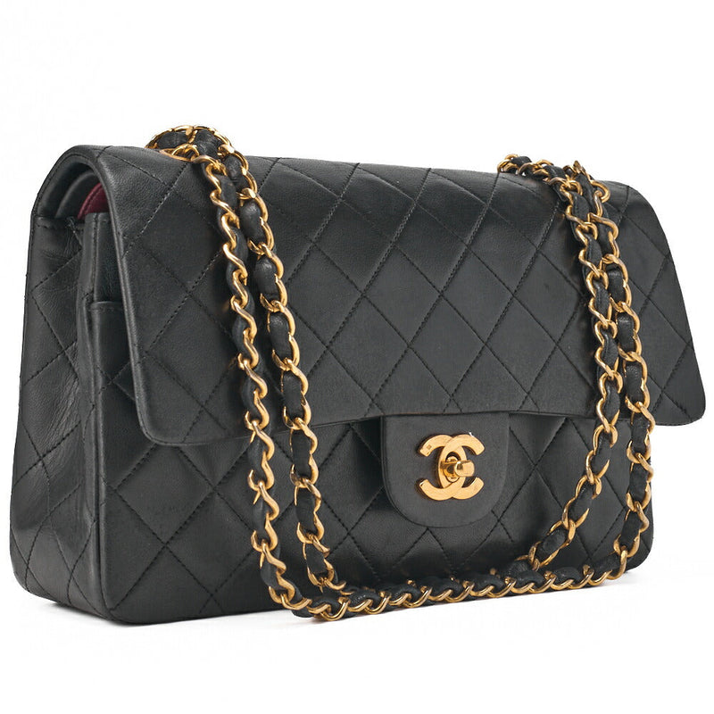Pre-Owned Chain Shoulder Bag Matelassé Double Flap 23cm Lambskin Black Gold-Tone Hardware, Pre-Owned