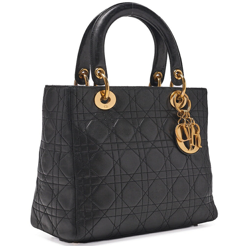 Pre-Owned Shoulder Bag Matelassé Double Flap 25cm Chain Shoulder Lambskin Black Gold-Tone Hardware, Pre-Owned