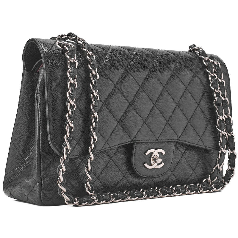 Pre-Owned Chain Shoulder Bag Double Flap Deca Matlasse 30cm Caviar Skin Black (Silver Fittings) Women's Bag Women's
