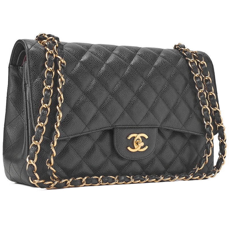 Pre-Owned Chain Shoulder Bag Deca Matelassé Double Flap 30cm Caviar Skin Black Gold-Tone Hardware, Pre-Owned