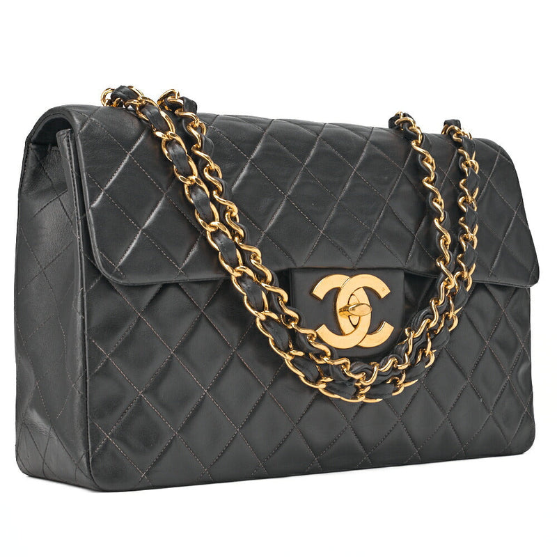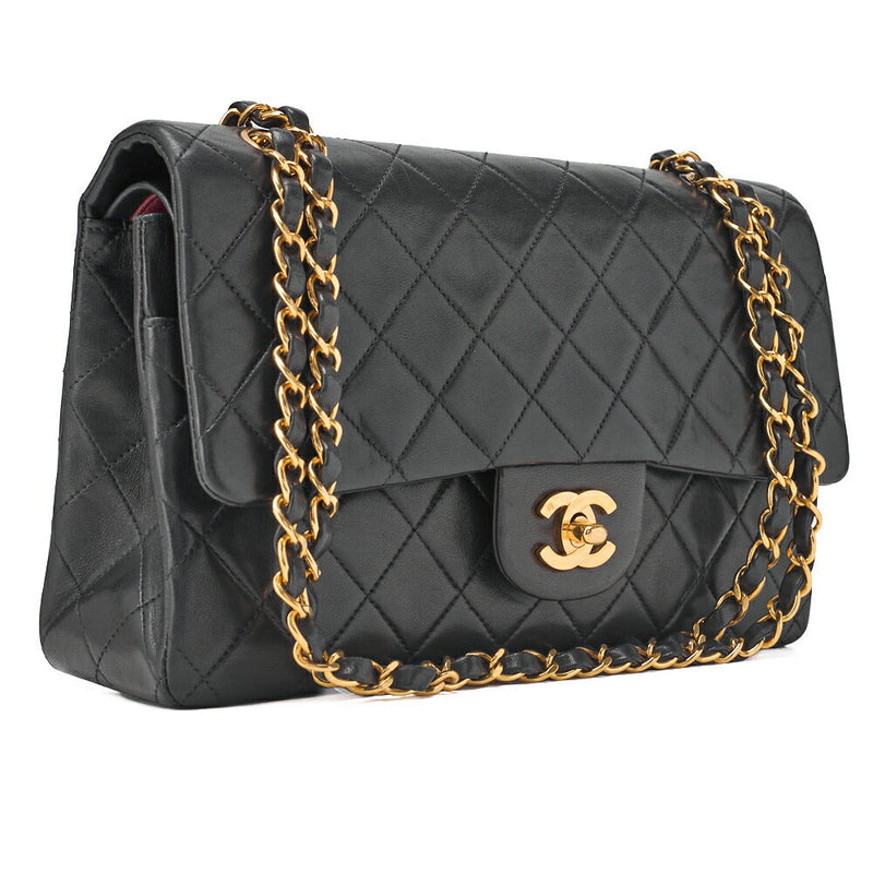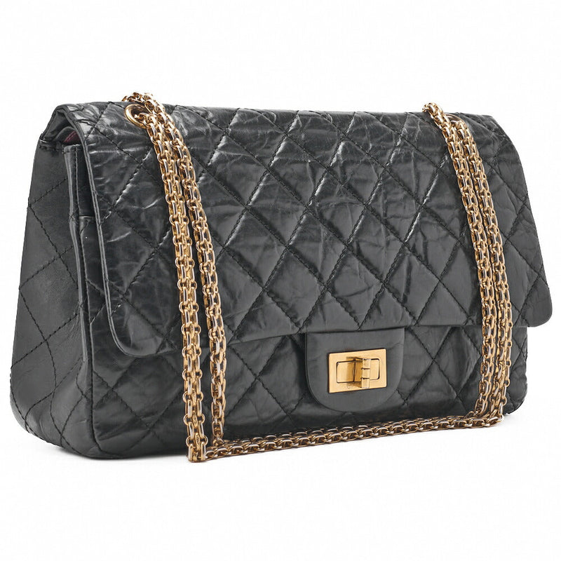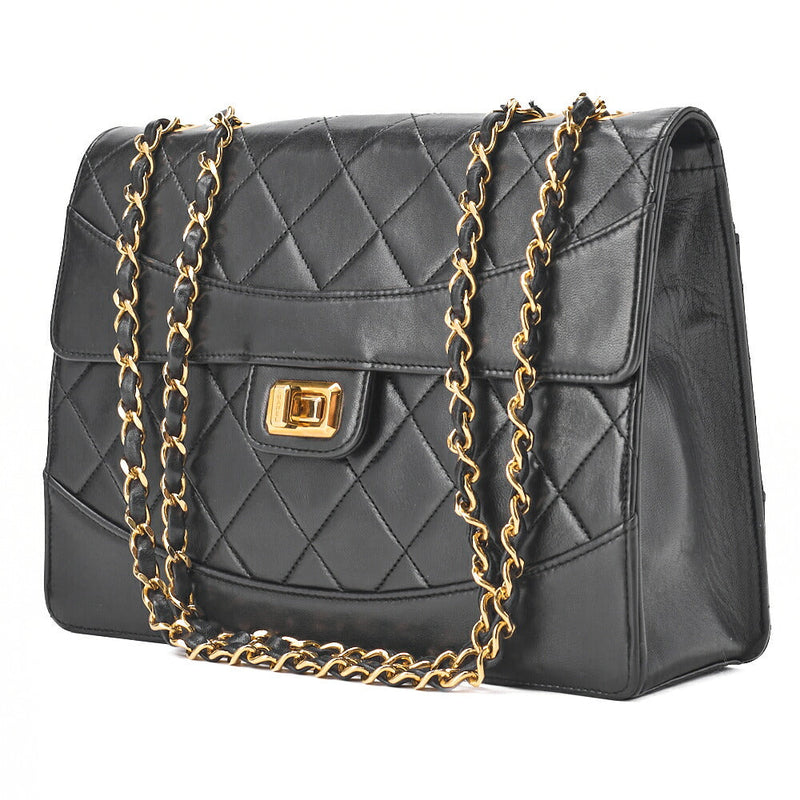 Pre-Owned Chain Shoulder Bag Matelassé 2.55 Vintage Calf Large Size Black Gold-Tone Hardware, Pre-Owned