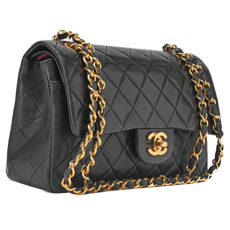 Pre-Owned Chain Shoulder Bag Matelassé Double Flap 23cm Lambskin Black Gold-Tone Hardware, Pre-Owned