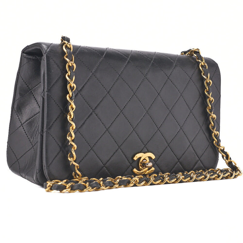Pre-Owned Shoulder Bag Matelassé Lambskin Black Gold-Tone Hardware, Pre-Owned