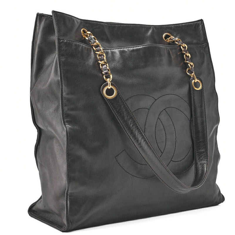 Pre-Owned Shoulder Bag Tote Bag Lambskin Black Black Gold-Tone Hardware, Pre-Owned