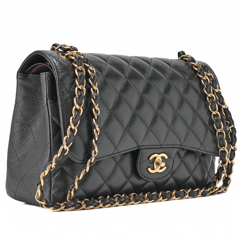 Gebrauchte Umhängetasche mit Kette Deca Matrasse 30 cm Doppelklappe Caviar Skin Schwarz Goldfarbene Hardware, Gebraucht