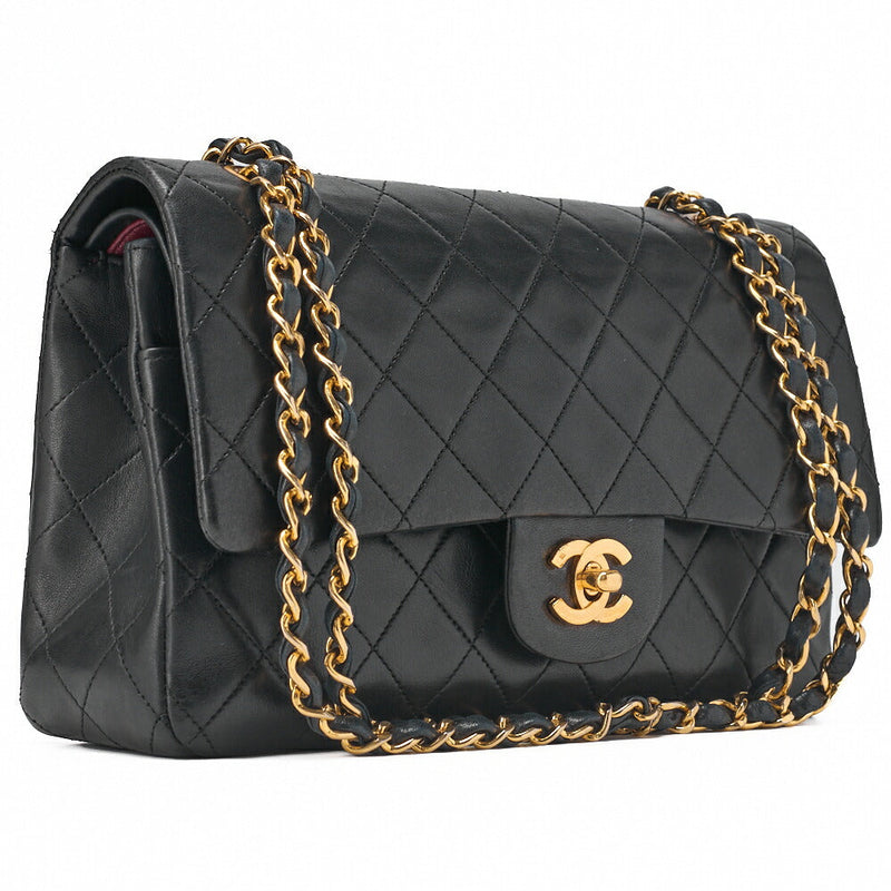 Pre-Owned Shoulder Bag Matelassé Double Flap 25cm Chain Shoulder Lambskin Black Gold-Tone Hardware, Pre-Owned