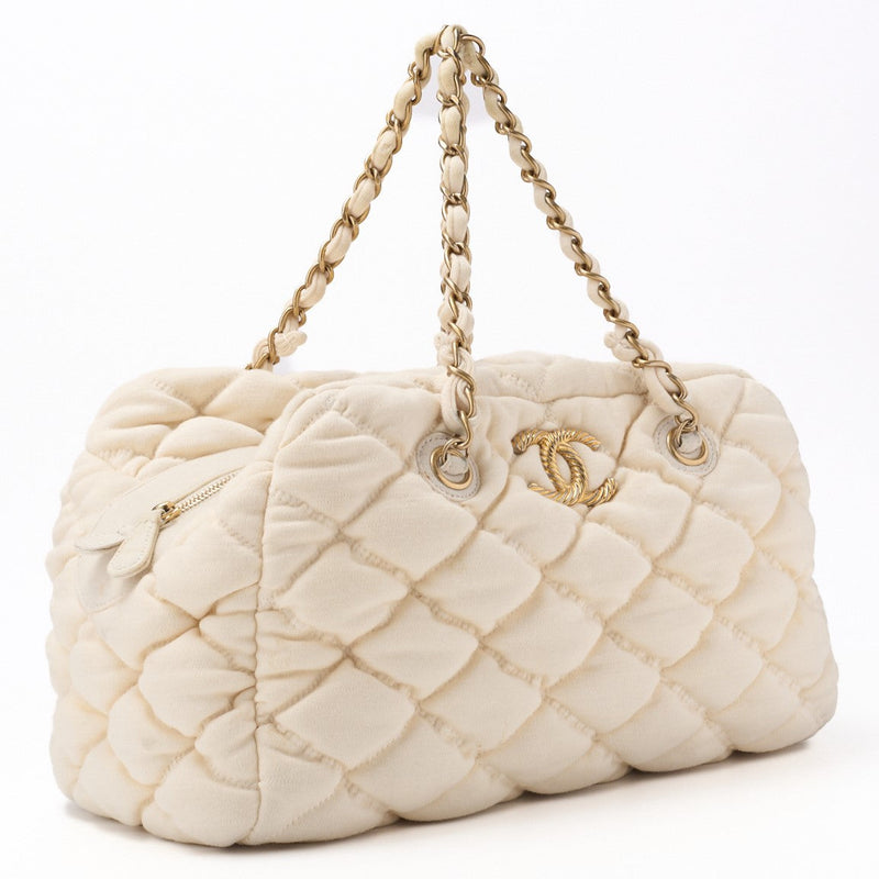 Gebrauchte Schultertasche Matelassé Bubble Quilt Baumwolle Elfenbein Goldfarbene Hardware Gebraucht