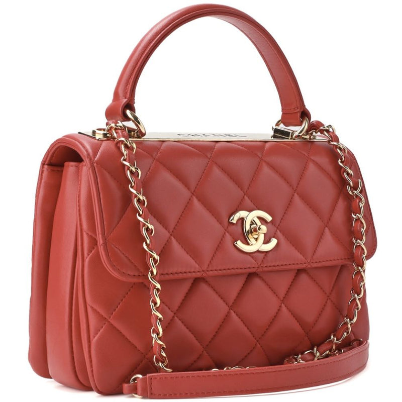 Gebrauchte Handtasche 2WAY Chain Shoulder Matelassé Lammleder Rot Goldfarbene Hardware Pre-Owned