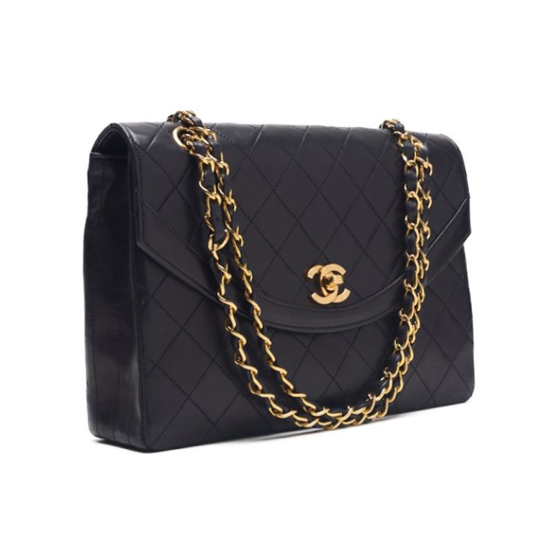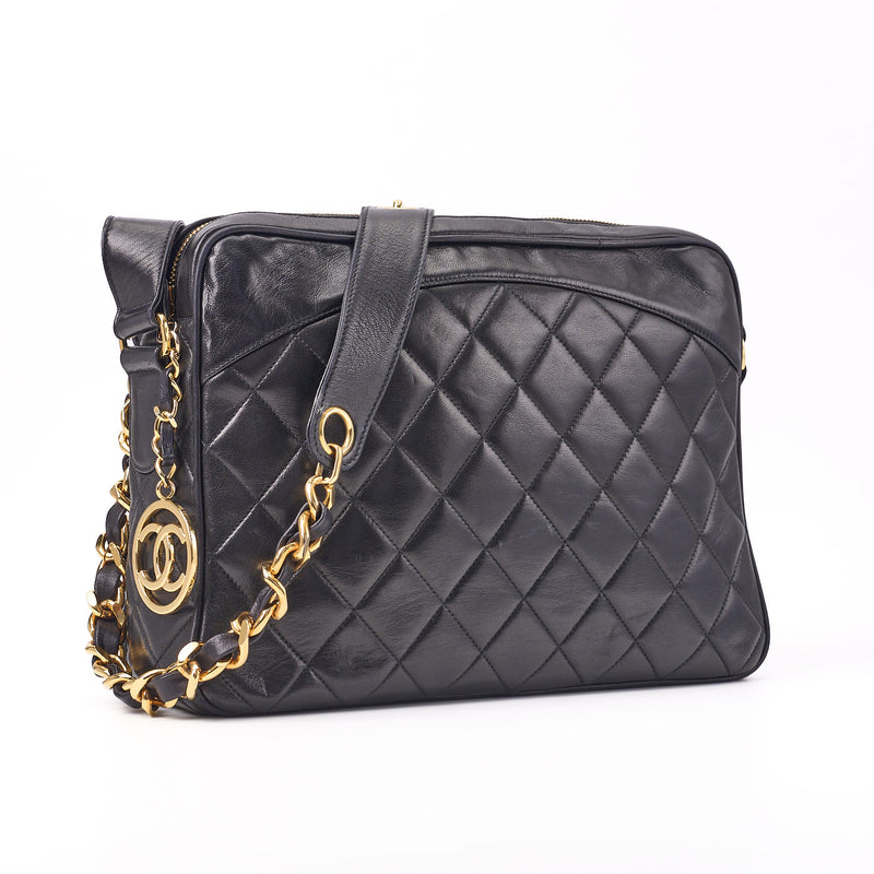 Pre-Owned Schultertasche Matelassé Design Klappe Drehverschluss Kette Schulter Lammleder Schwarz Goldfarbene Hardware Pre-Owned