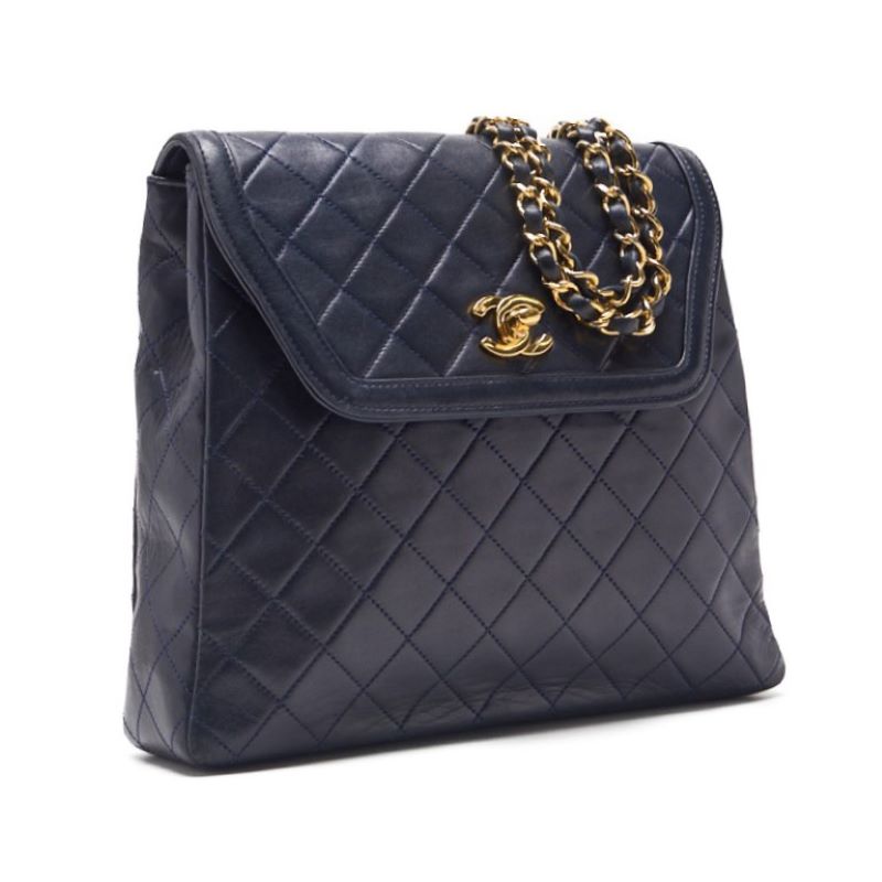 Gebrauchte Umhängetasche, Matelassé, Lammleder, Marineblau, Goldfarbene Metallteile, Gebraucht