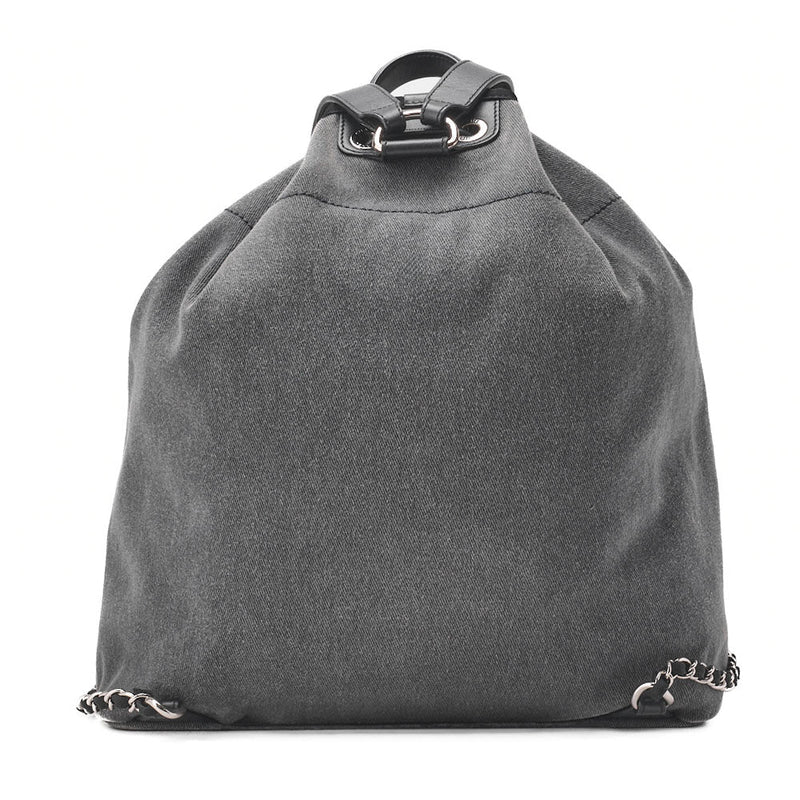 Gebrauchte Rucksacktasche Deauville Kordelzug Canvas Denim Grau Silberfarbene Hardware Gebraucht