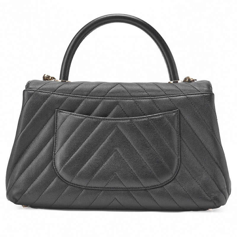 Gebrauchte Umhängetasche 2WAY V Stitch Coco Handle Caviar Leder Schwarz Goldfarbene Hardware Gebraucht