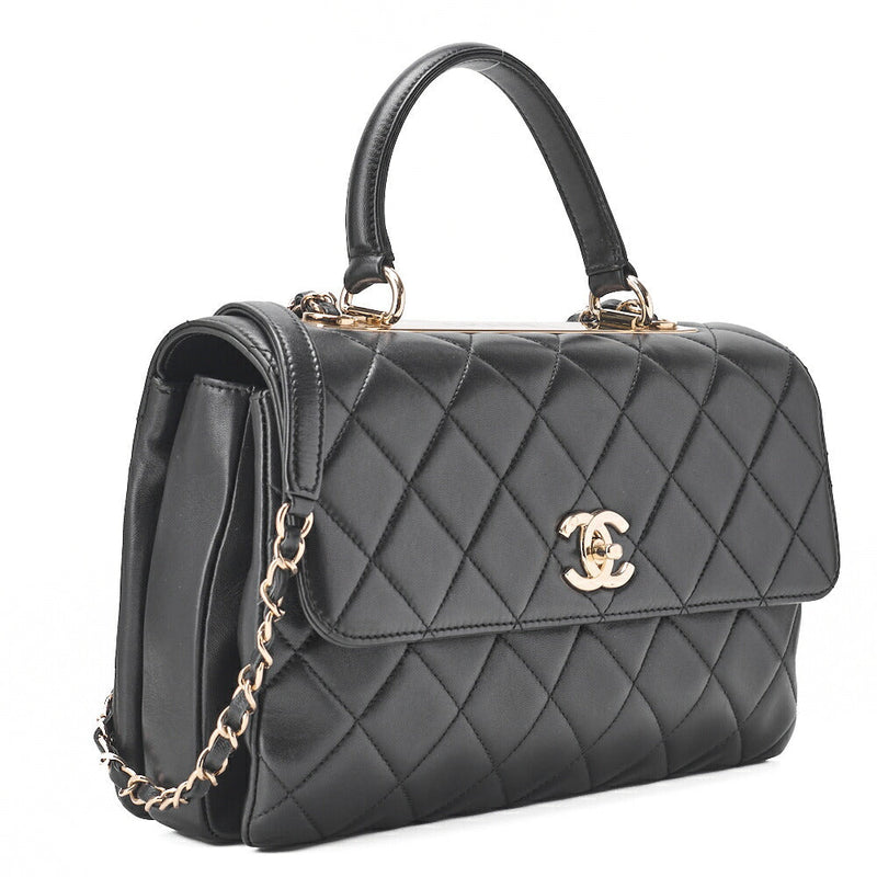 Pre-Owned Schultertasche, Matelassé, 2WAY, Lammleder, Schwarz, Goldfarbene Hardware, Pre-Owned