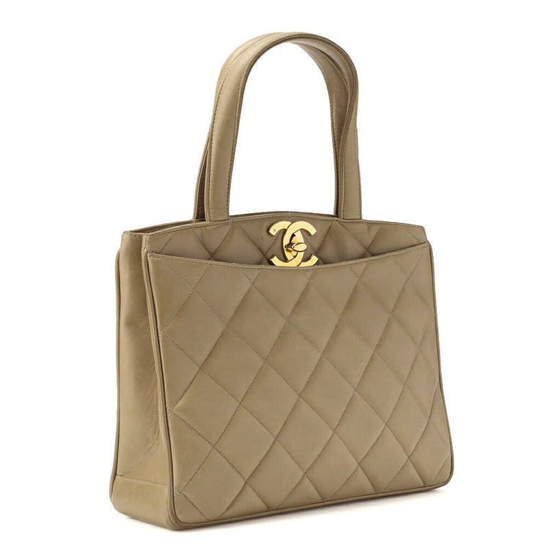 Gebrauchte Handtasche Matelassé Drehverschluss Lammleder Beige Goldfarbene Hardware Gebraucht