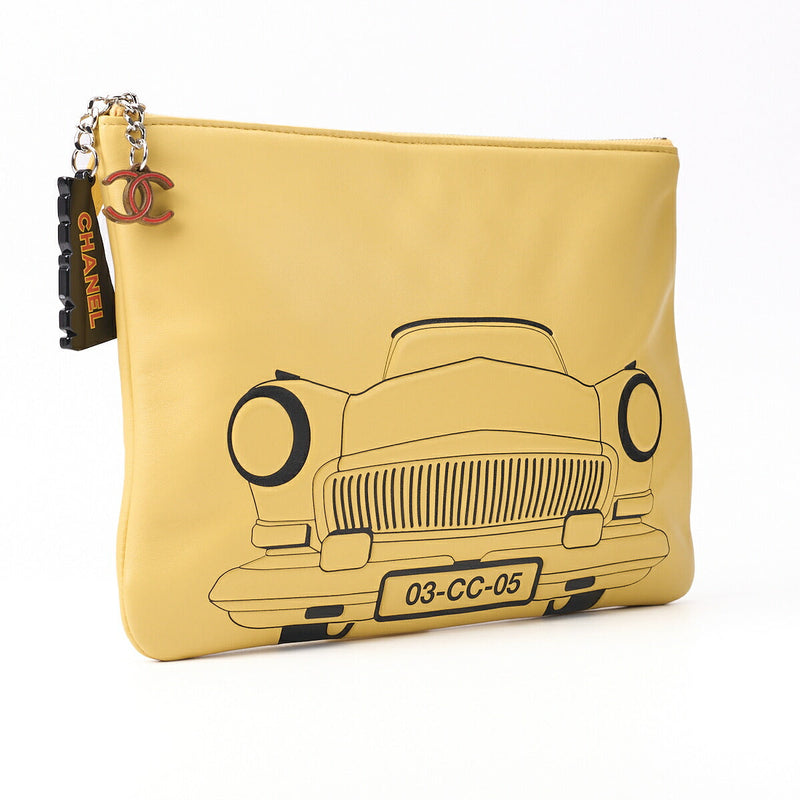 Gebrauchte Clutch, Coco Havana, Mini, Lammleder, Gelb, Silberfarbene Metallteile, Gebraucht