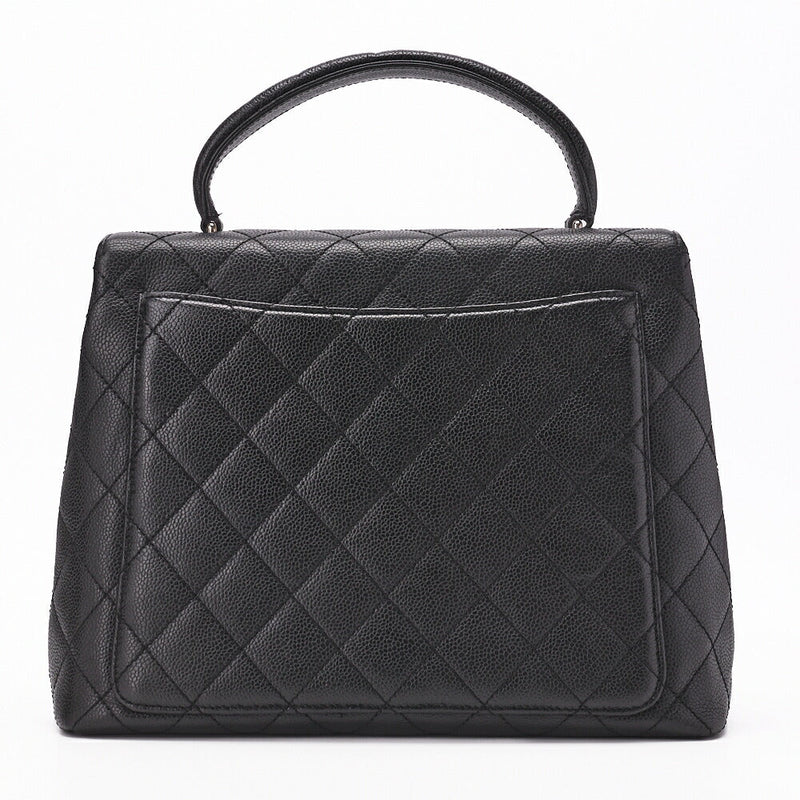 Gebrauchte Handtasche, Matelassé, Drehverschluss, Kaviarhaut, Schwarz, silberfarbene Metallteile, gebraucht