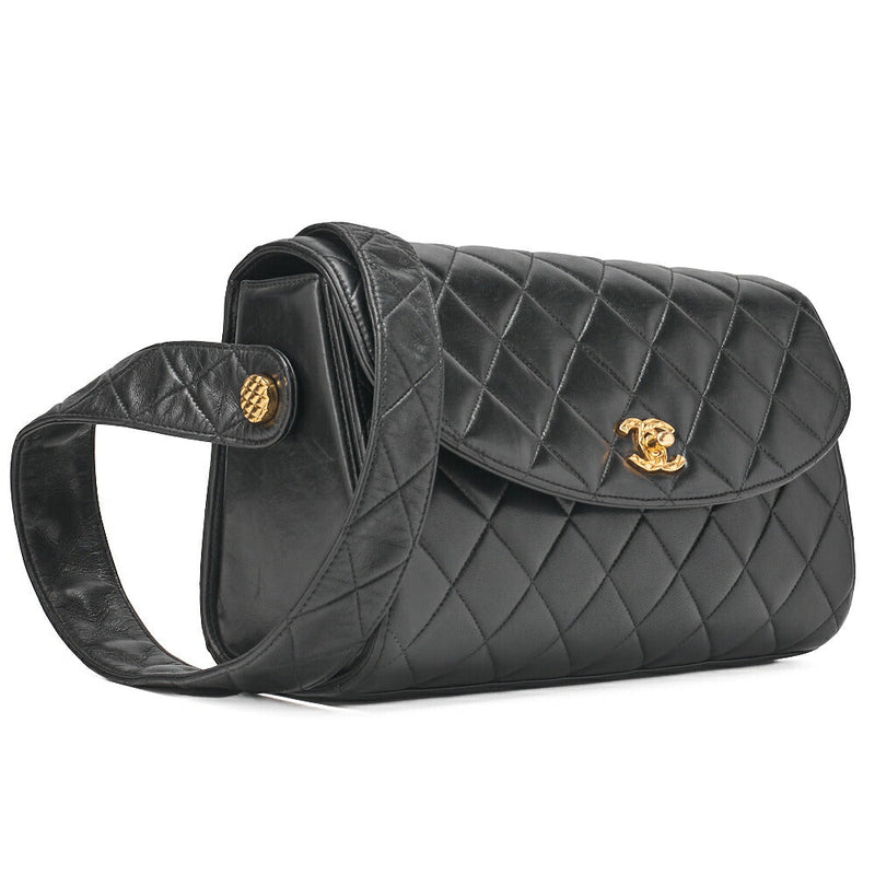 Gebrauchte Umhängetasche Rucksack Lammleder Matelassé Deca Coco Turnlock Schwarz Goldfarbene Hardware, Gebraucht