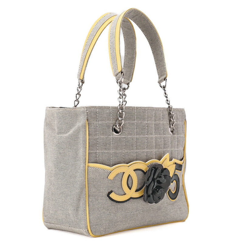 Gebrauchte Tragetasche Choco Bar Camellia Canvas Grau × Gelb Silberfarbene Hardware, Gebraucht