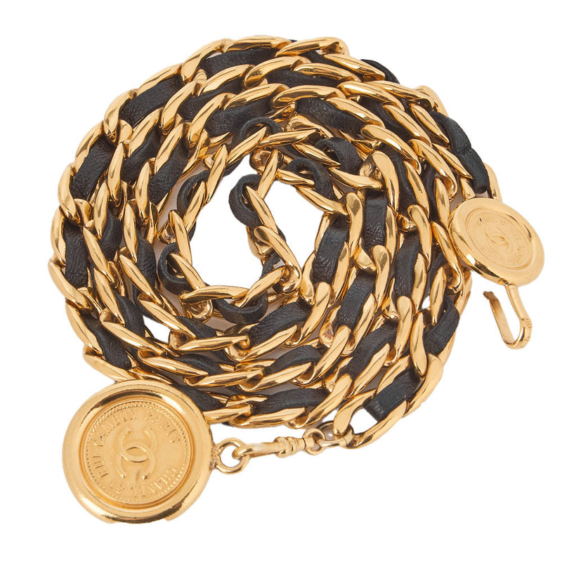 Gebrauchter Cocomark Kettengürtel GP Leder SchwarzGoldfarbene Hardware, Gebraucht