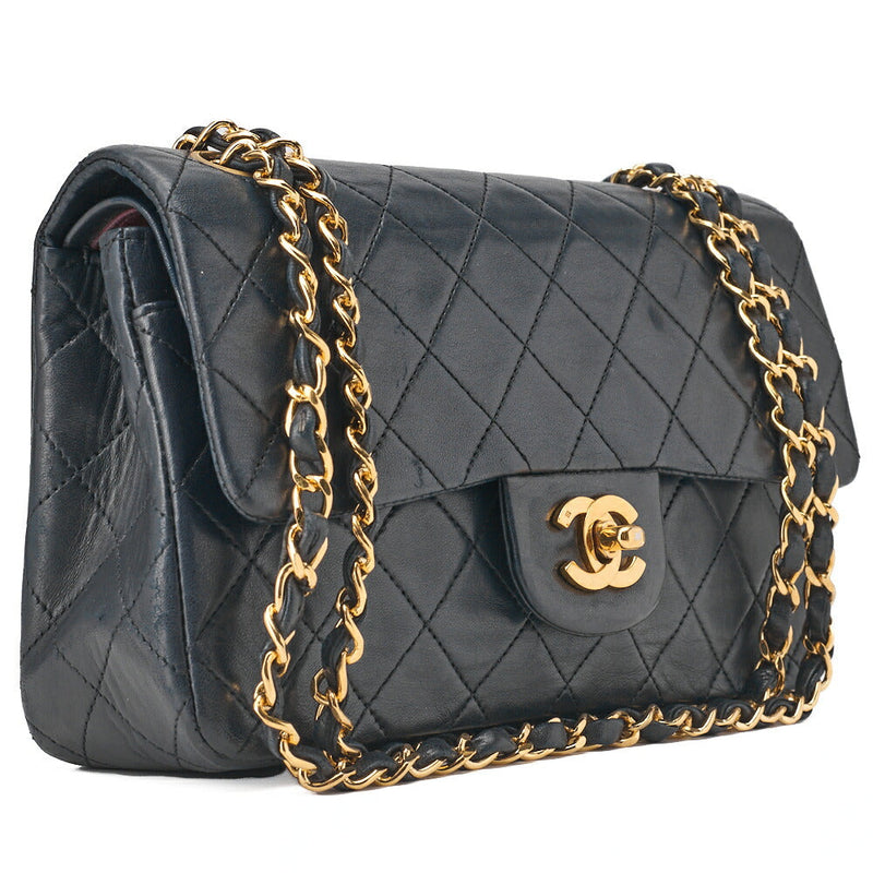 Pre-Owned Schultertasche Matelassé Doppelklappe Lammleder Navy Goldfarbene Hardware Pre-Owned