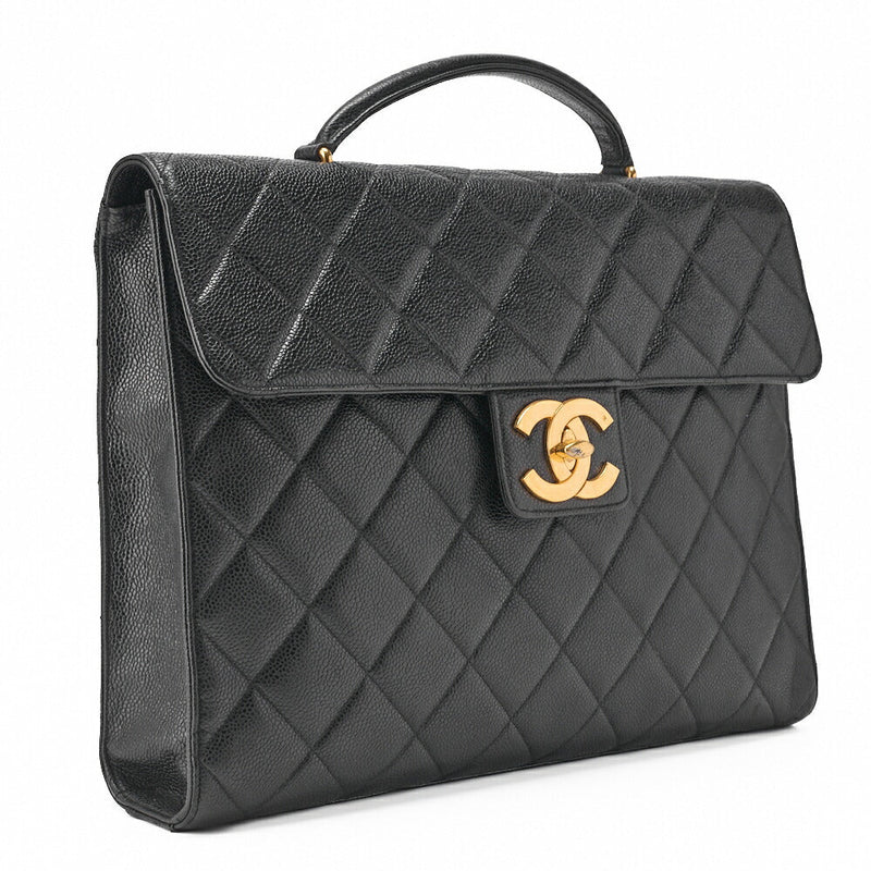 Gebrauchte Handtasche Matelassé Drehverschluss Kaviarleder Schwarz Goldfarbene Hardware Gebraucht