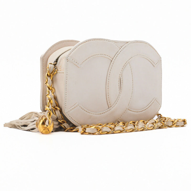Gebrauchte Umhängetasche, Coco Mark Fransen, Lammleder, Weiß, Goldfarbene Metallteile, Gebraucht