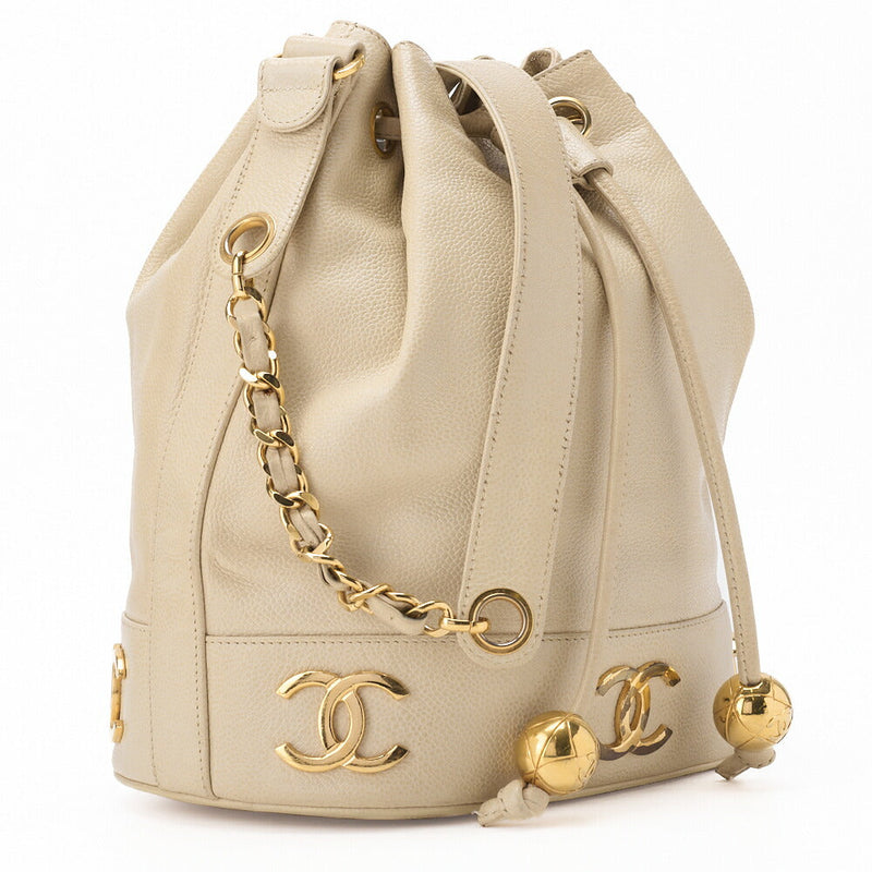 Pre-Owned Chain Shoulder Bag, Triple Coco, Caviar Skin, Elfenbein, Goldfarbene Metallteile, Pre-Owned