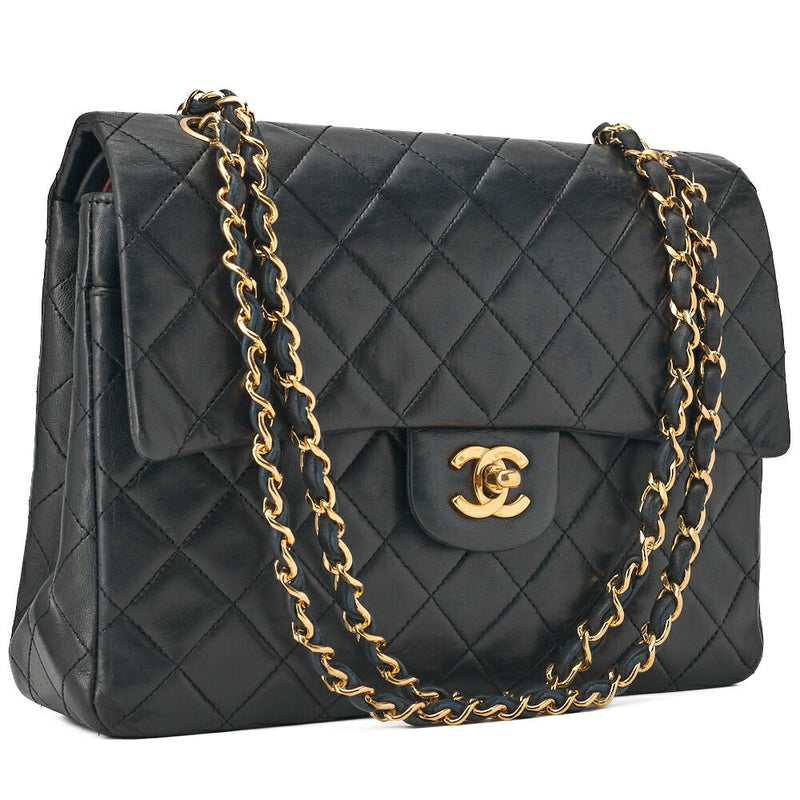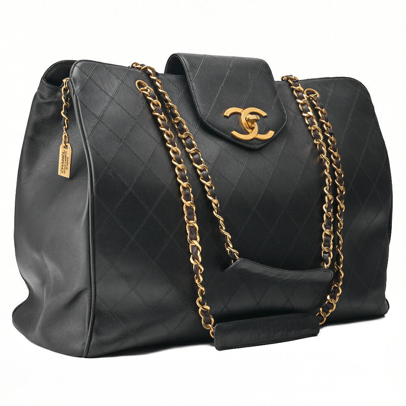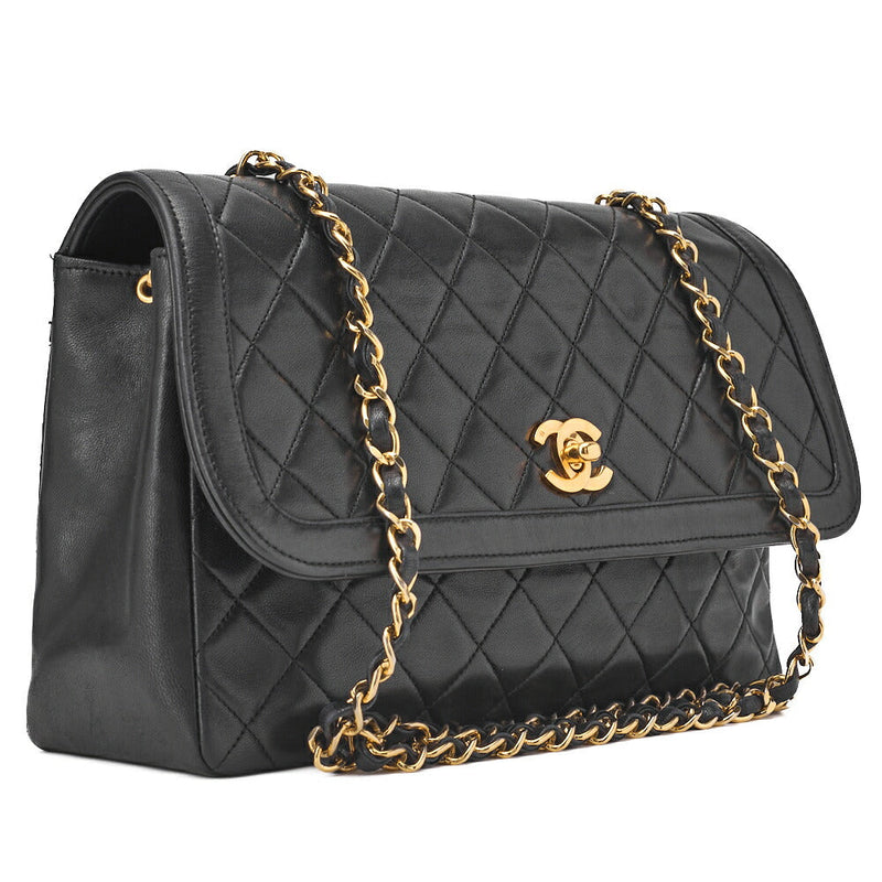 Pre-Owned Chain Shoulder Bag Big Matelassé Lammleder Schwarz Goldfarbene Hardware Pre-Owned