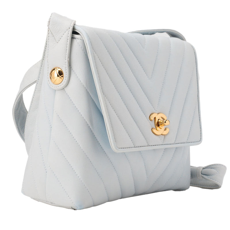 Pre-Owned Schultertasche V-Stitch Coco Mark Lammleder Hellblau Goldfarbene Hardware Pre-Owned