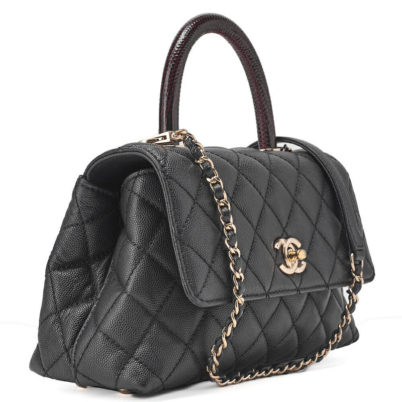 Gebrauchte Umhängetasche Handtasche Matelasse Coco Handle 2WAY Caviar Skin Schwarz Goldfarbene Hardware Gebraucht