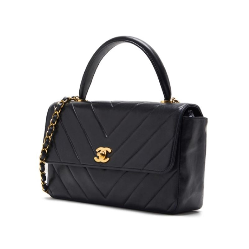 Pre-Owned Schultertasche Matelassé Design Flap Chain Shoulder Lammleder Schwarz Goldfarbene Hardware Pre-Owned