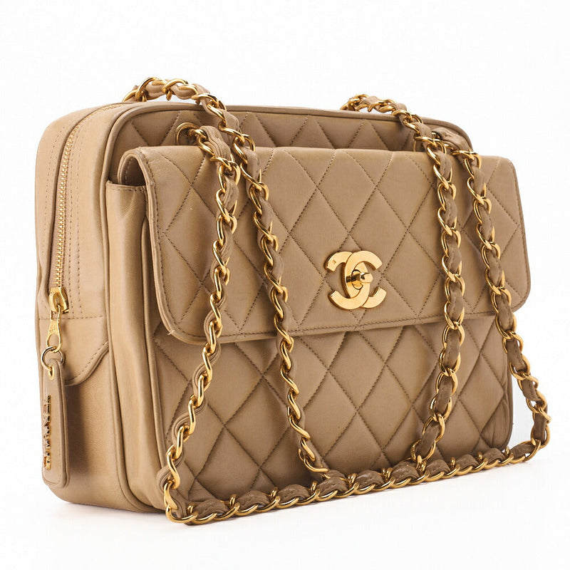 Pre-Owned Chain Shoulder Bag Matelasse Lammleder Beige Goldfarbene Hardware Pre-Owned