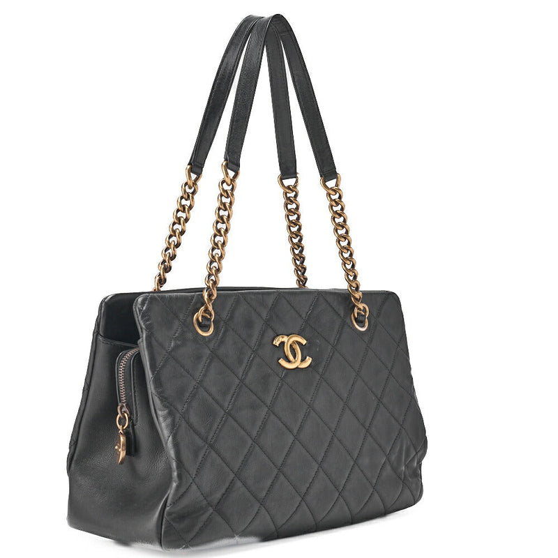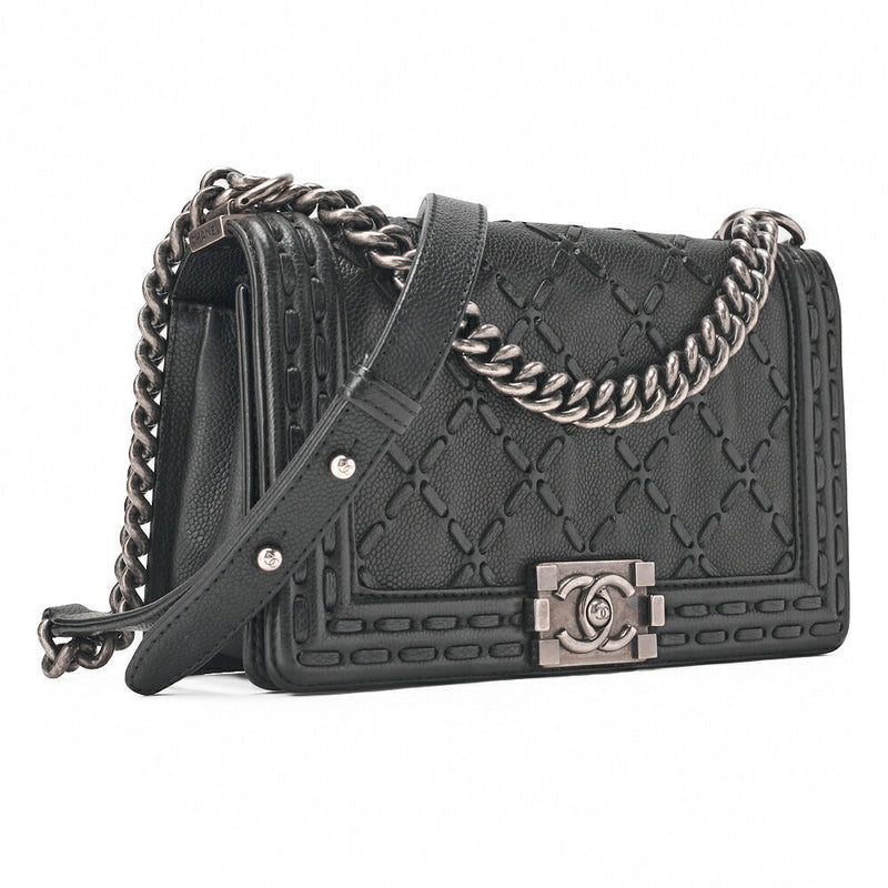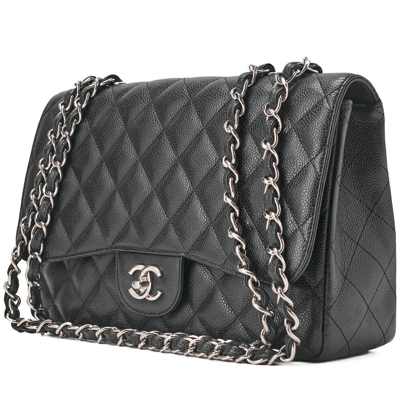 Pre-Owned Chain Shoulder Bag Big Matelassé Caviar Skin Schwarz Silberfarbene Hardware Pre-Owned