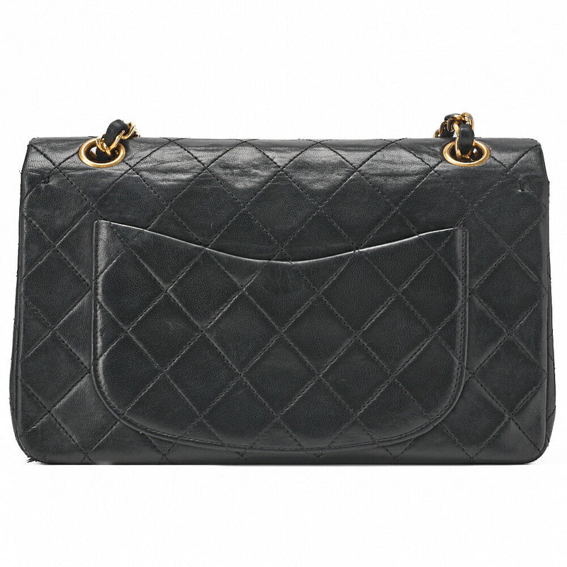 Pre-Owned Schultertasche Matelasse 23 Doppelklappe Kette Lammleder Schwarz Goldfarbene Hardware Pre-Owned