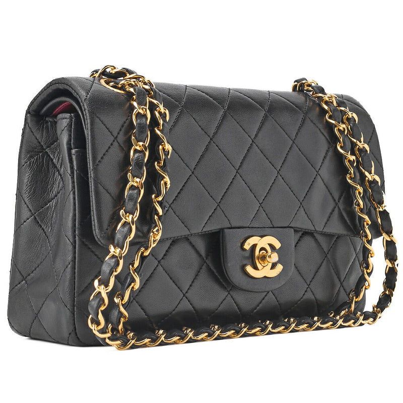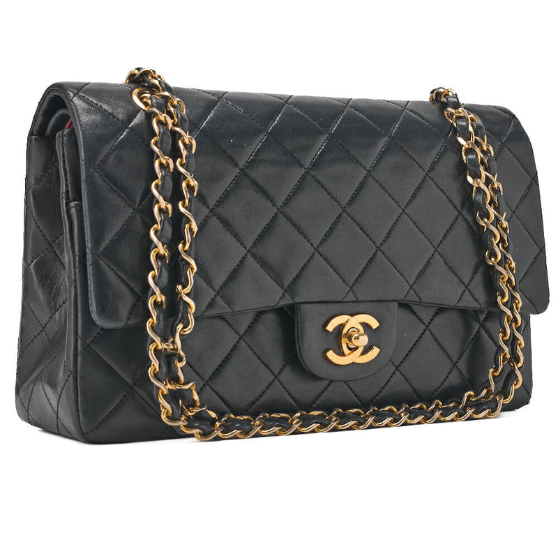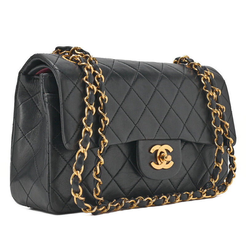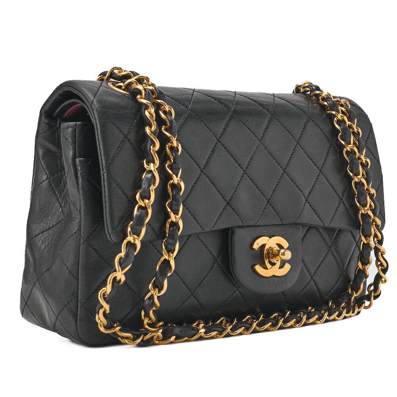 Pre-Owned Schultertasche Matelasse 23 Doppelklappe Kette Lammleder Schwarz Goldfarbene Hardware Pre-Owned