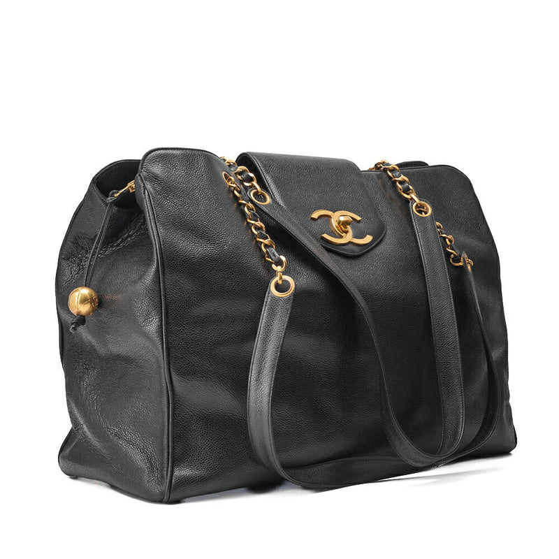 Pre-Owned Schultertasche Supermodel Doppelkette Schulter Caviar Skin Schwarz Goldfarbene Hardware Pre-Owned