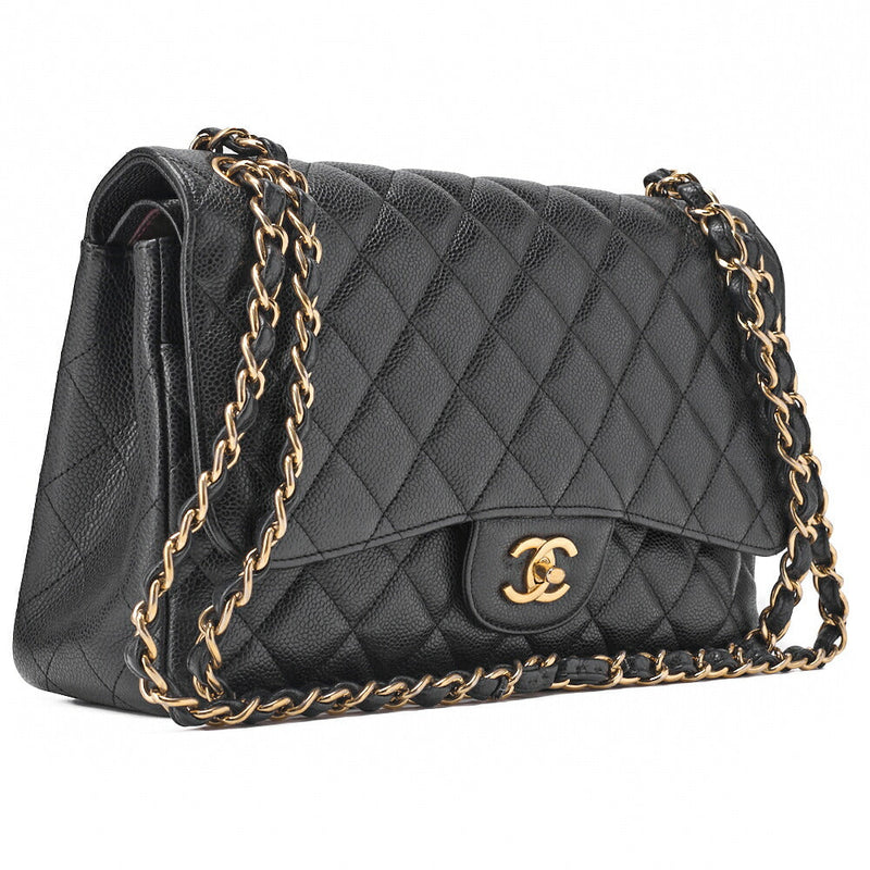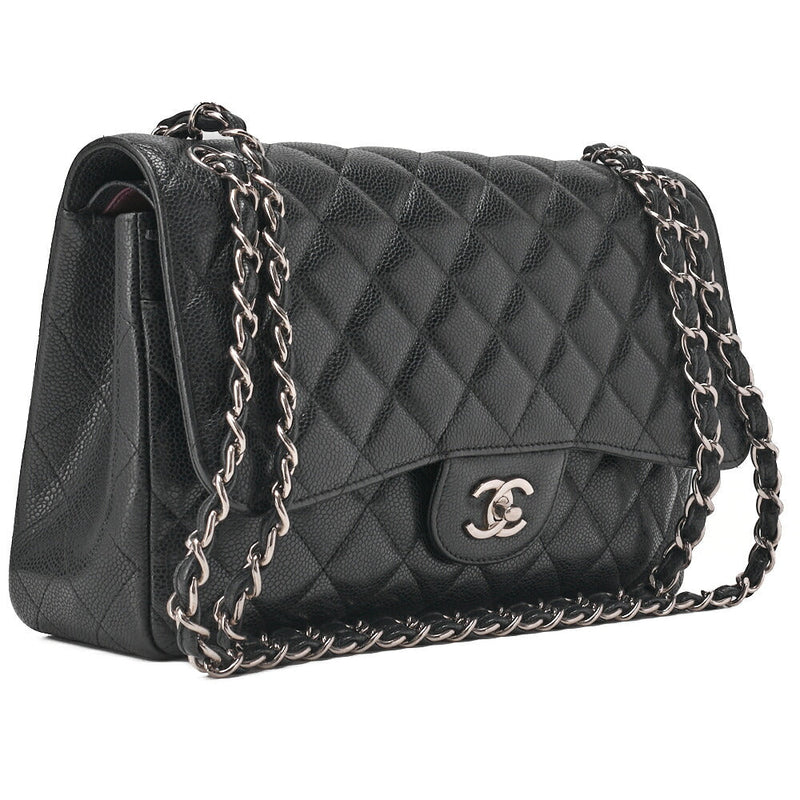 Pre-Owned Chain Shoulder Bag Big Matelassé Caviar Skin Schwarz Silberfarbene Hardware Pre-Owned