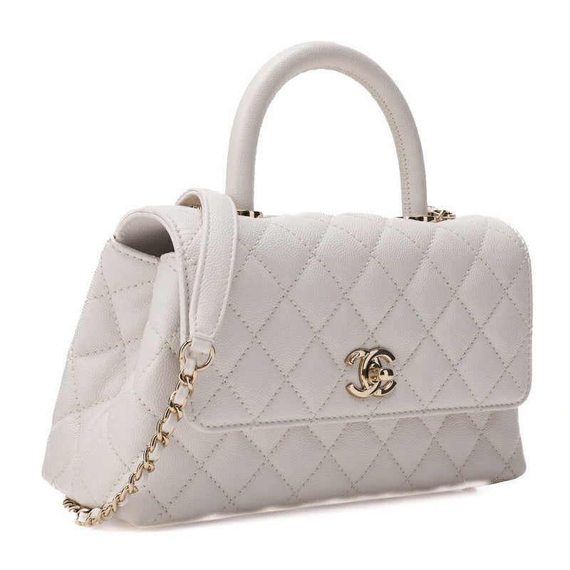 Pre-Owned Schultertasche Handtasche Matelasse Coco Handle 2WAY Caviar Skin Weiß Goldfarbene Hardware Pre-Owned